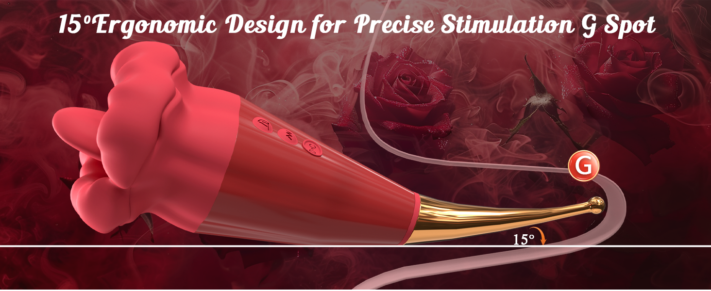 15° ergonomic design, precise stimulation of the G-spot vibrator - The slender body of the Rose vibrator can easily enter your vagina and bring comfort. The 15° angle design accurately targets and stimulates your G-spot, and combined with the vibration function, you can easily experience the climax of the G-spot!