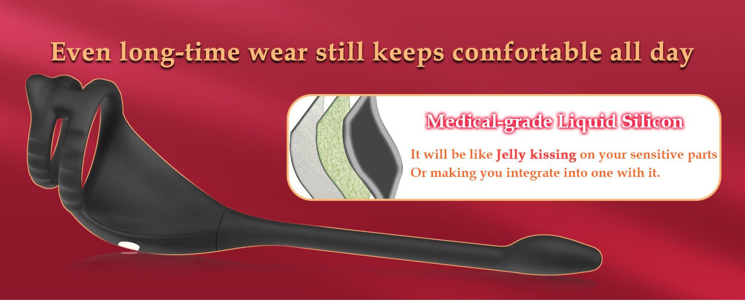 Dual Motors, 9 Intense Vibrations - This penis ring vibrator is equipped with 2 powerful vibration motors and 9 vibration modes. Multiple vibration modes can directly transmit the most stimulating waves to your penis and testicles, simulating the feeling of sex, allowing you to adapt in advance and last longer!